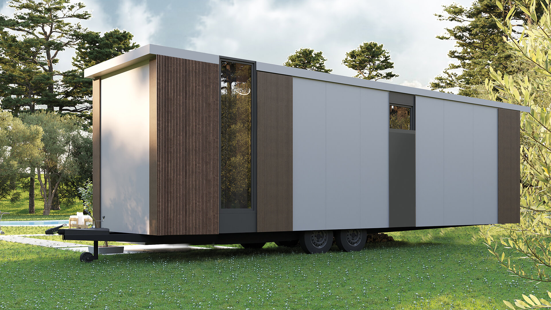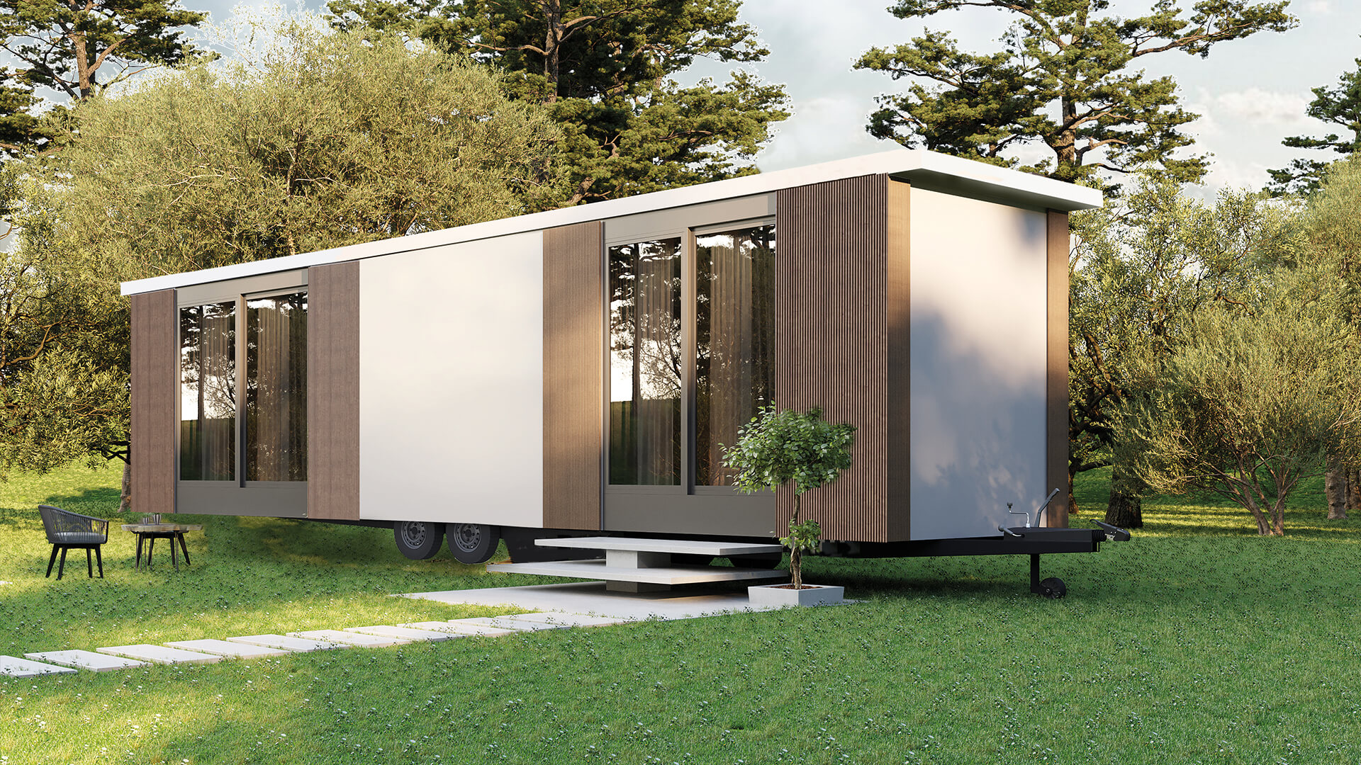 Unsere FLAT Modelle sind eine neue Klasse mobiler Ferienhäuser. Jenseits klassischer Caravans und Tiny Houses.